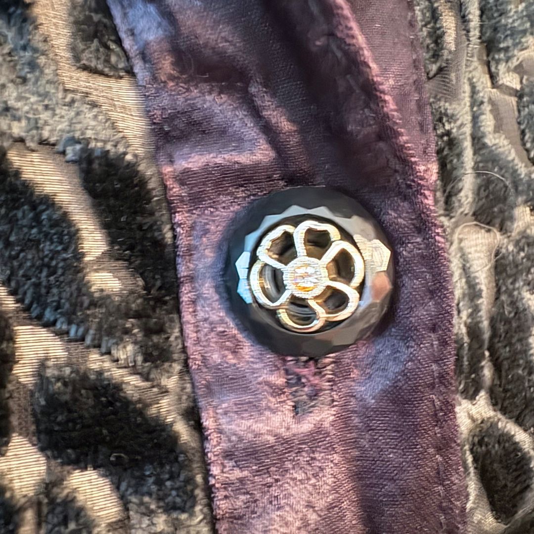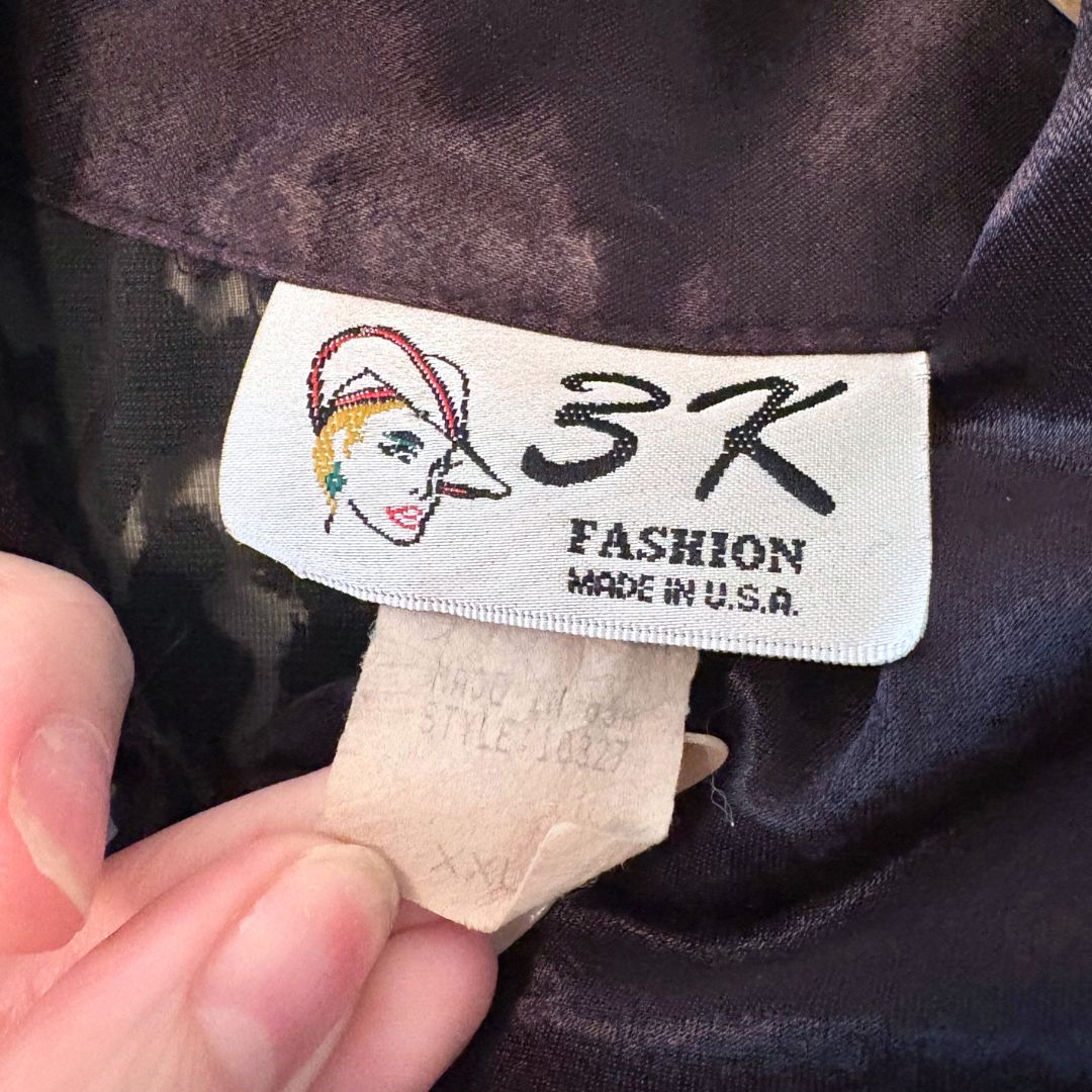 This versatile piece can either be worn as a dress or a duster and features sheer burnout velvet material, intricate buttons, and silky cuffs, collar, and trimming. Originally tagged a size XXL from the brand 3K Fashions. Made in the USA.