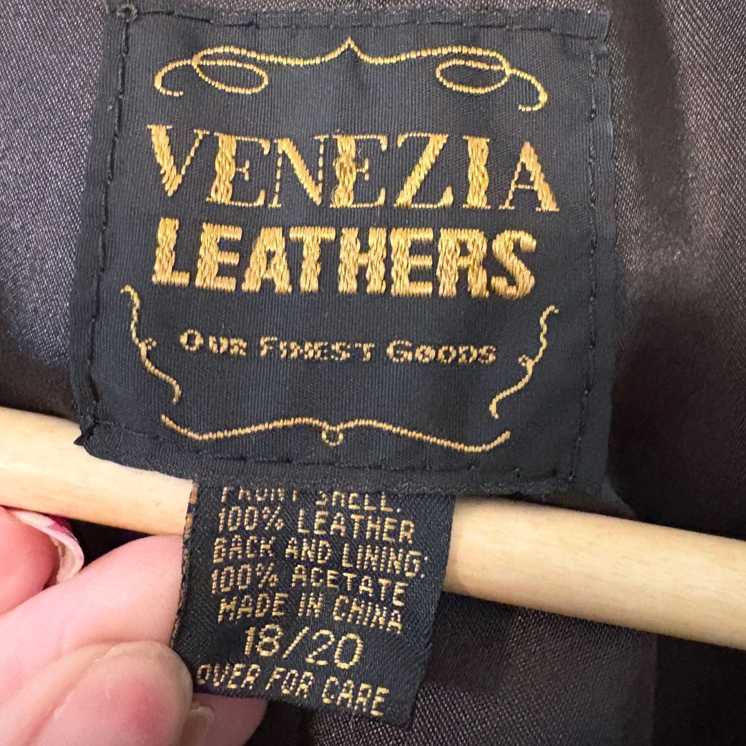 Bring in fall with this gorgeous layering piece! The front panel is made of genuine leather and the back is acetate. Tagged a women's size 18/20 from the brand Venezia Leathers. Features a front zipper and zippered pockets.
